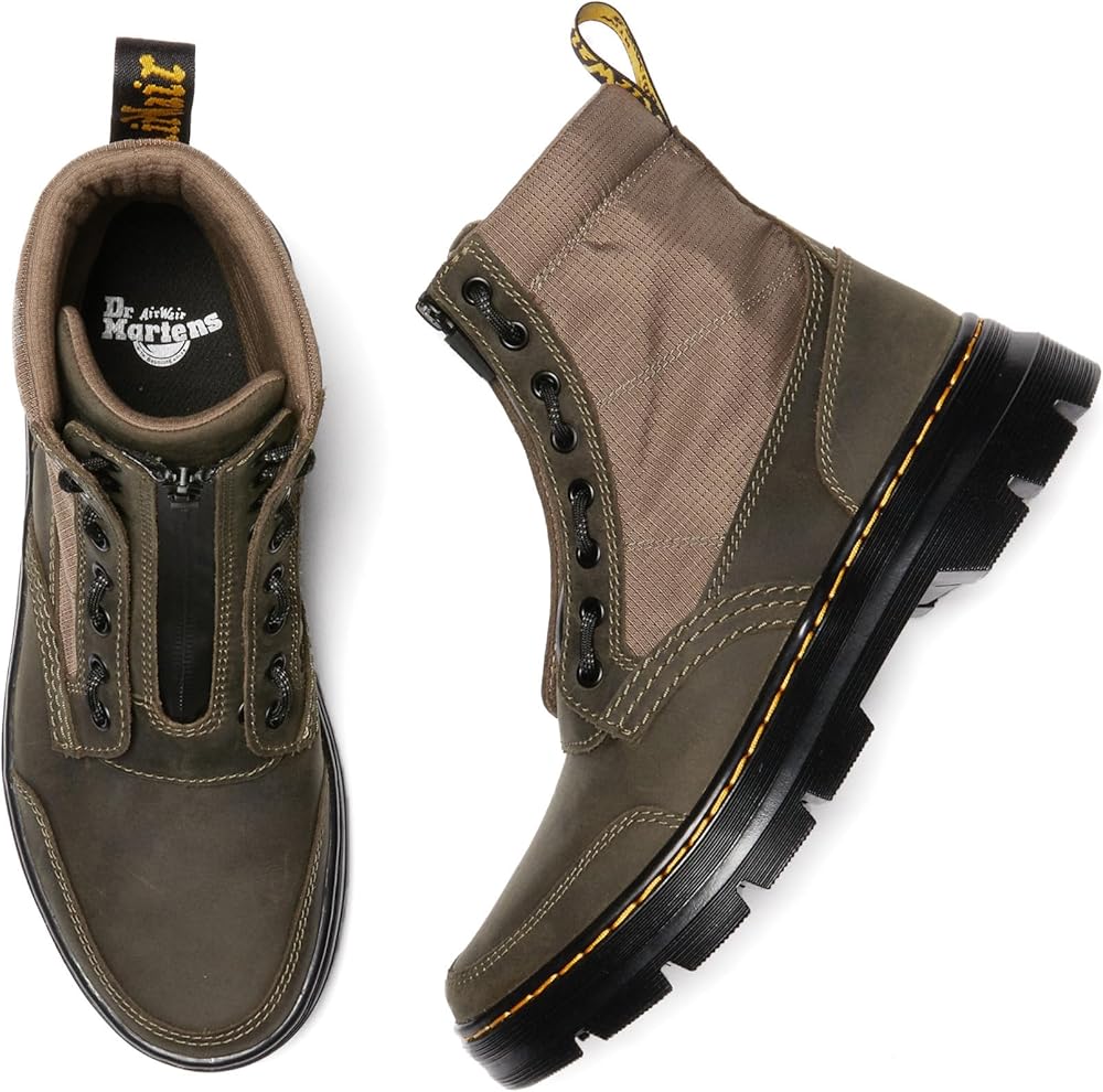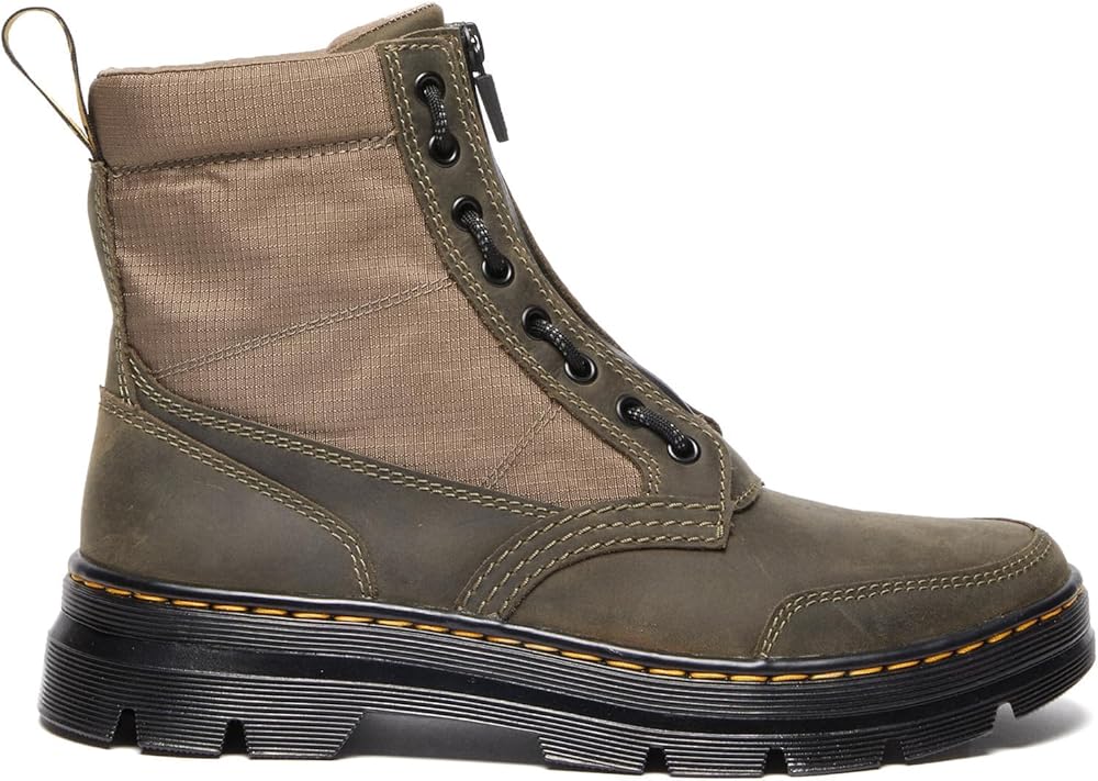 The casual Dr. Martens Combs boot evolves with a removable jungle zip. This versatile boot features a mix of leather and synthetic materials to create a practical and easy-to-style all-season boot. It's got an 8-eye lace fastening, gator-inspired quarters and signature DM's details in the scripted heel tab and yellow stitching.