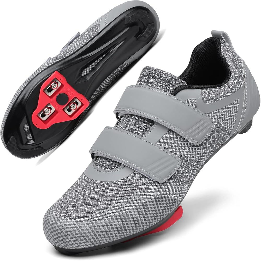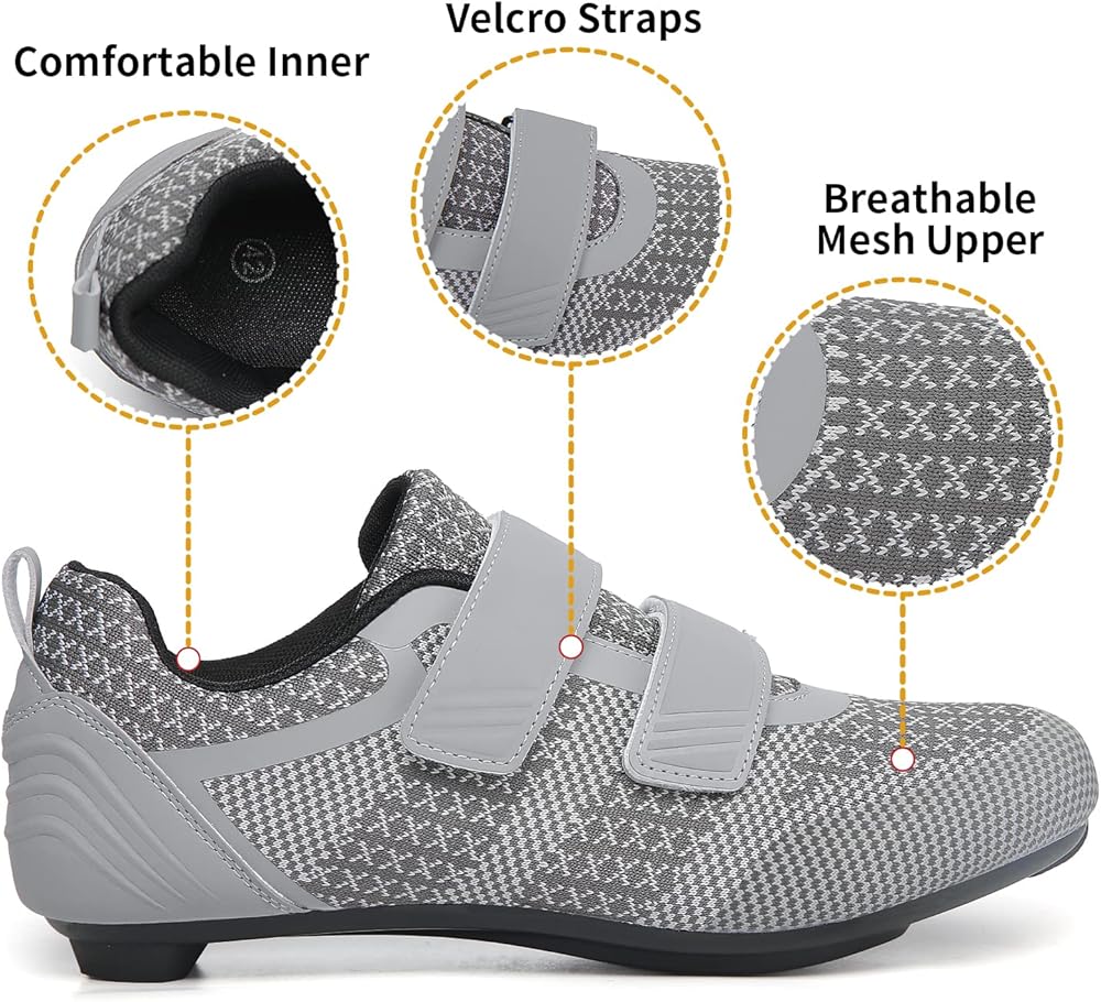 【Breathable & Lightweight】: Our Spin shoes for women men indoor cycling upper is made of Knit mesh, which is much breathable and lightweight. The Velcro straps design is easy to adjust for a better fit, comfort, and security for all of your rides.