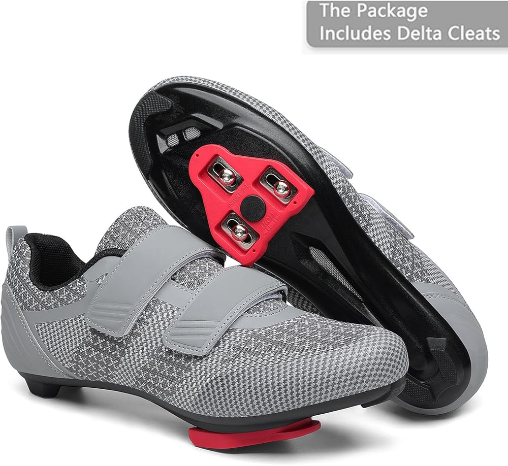 Unisex Road Bike Cycling Shoes Compatible with Peloton Shimano SPD Bike Riding Shoes for Men Women, 3 Straps, Pre-Installed Delta Cleats for Indoor Outdoor Cycling Biking