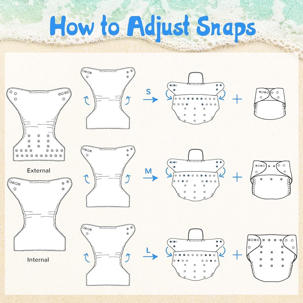 2 Sizes fit for 0-8M Babies or 8M-3T Toddlers: Babygoal reusable swim diapers have small size and large size, which are suitable for babies 0-8M and 8M-3T. They have adjustable snaps and grows with your little one. If your baby is less than 8 months and thin, we suggest you choose small size.