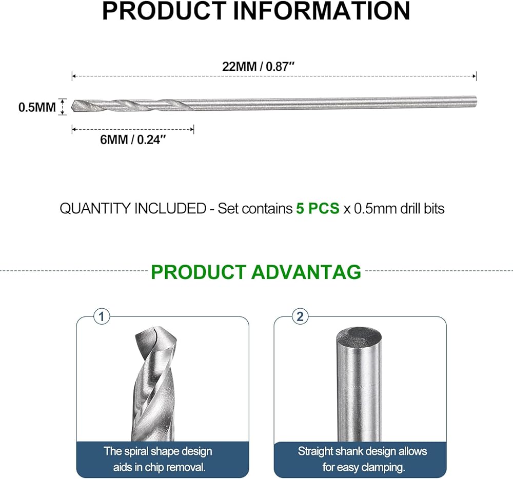 METALLIXITY Drill Bit (0.5mm) 5Pcs, 4241 High-Speed Steel Straight Shank 118° Uncoated Bright Finish Drill Bit for Wood Plastic Iron Copper Aluminum Low Soft Metal