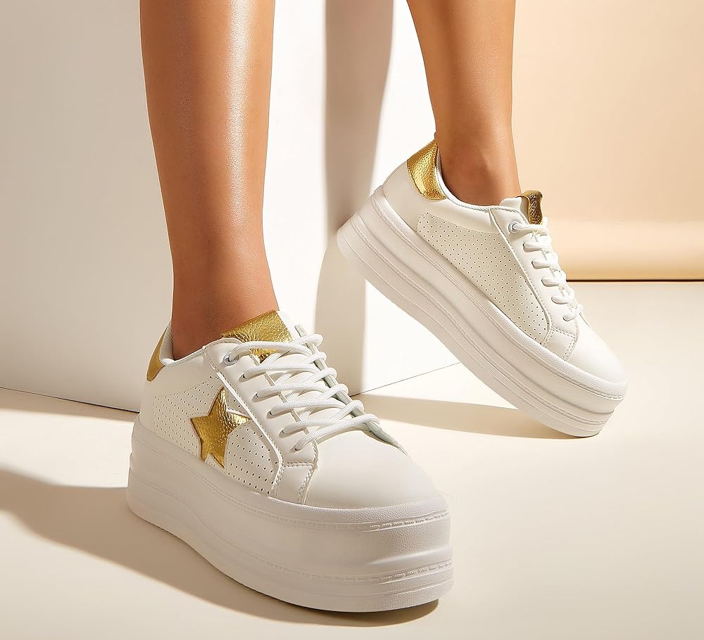 STYLISH & COSY CUSHION - Rubber sole provides excellent traction and stability for all surfaces.Follow the latest trend in Women's Fashion, where sportswear is the hottest thing in fashion amongst models and celebrities ! With these cool sneakers, that feature a comfortable footbed and chic surface, you will look good and feel good !