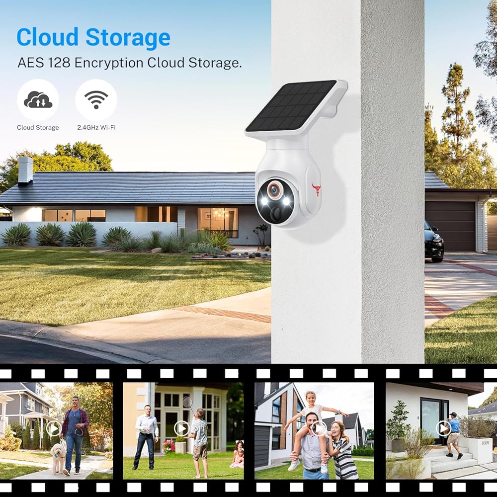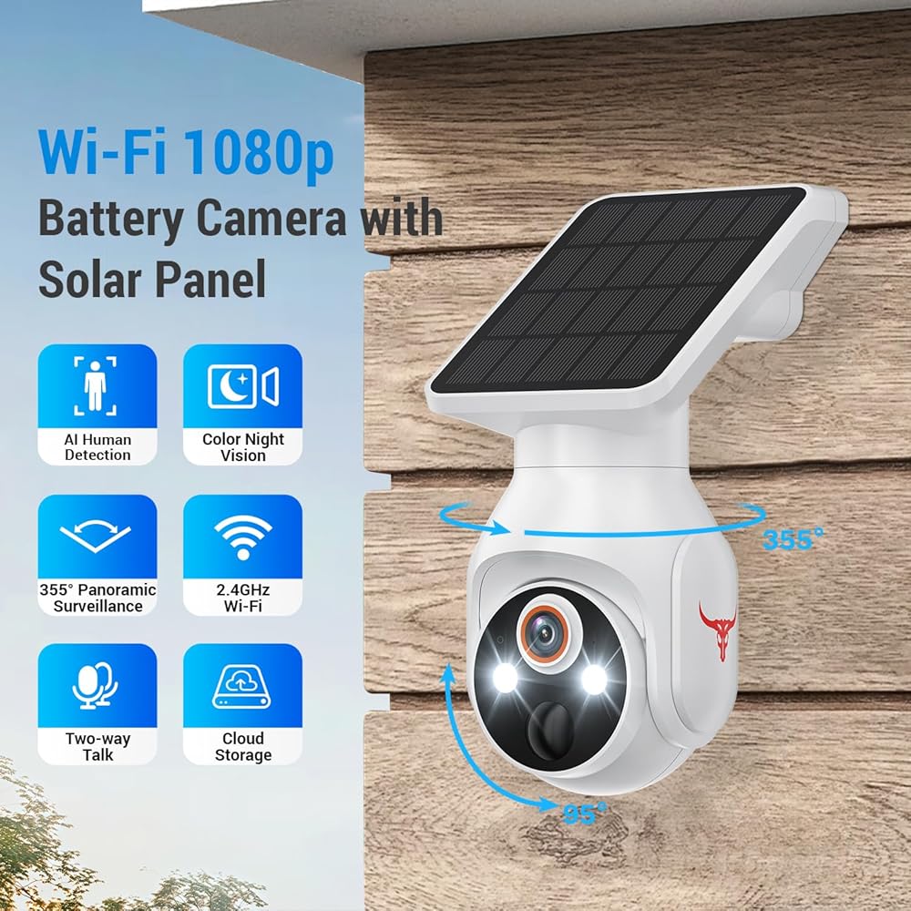 1080p Security Camera Wireless with Solar Panel, AI Human Detection, 2-Way Audio, Color Night Vision, 2.4G WiFi Only, Cloud Storage (Sold Separately), Indoor/Outdoor Surveillance Bullet Cam (WiFi)