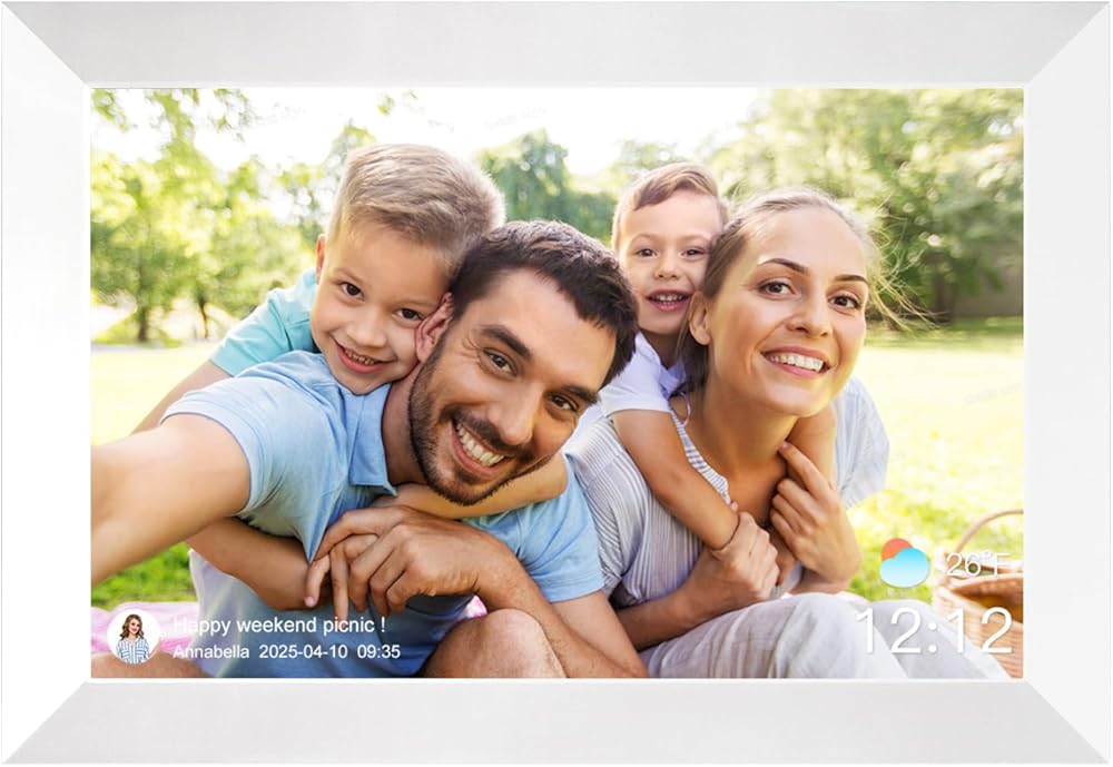 Anna Bella Digital Picture Frame 10.1 Inch IPS HD Touch Screen WiFi Smart Digital Photo Frame with 32GB Storage, Auto-Rotate, Easy Setup to Share Photos or Videos Remotely via AiMOR APP White