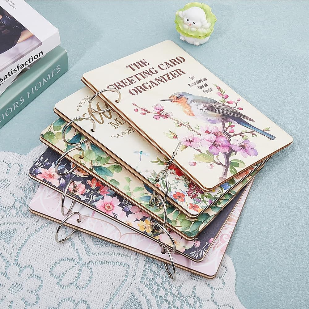 2PCS Wooden Card Keeper: Included 2 pcs wooden 2-ring loose leaf binder postcard photo album cover, one is printed with patterns that can be used as a cover, and the other can be used for the back protecting, to protect and display the cards you've saved from family and friends over the years.