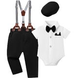 Package: 1x Baby Boy Formal Shirt + 1x Bow Tie + 1x Beret + 1x Suspender Pants. Machine wash and hand wash are both available.