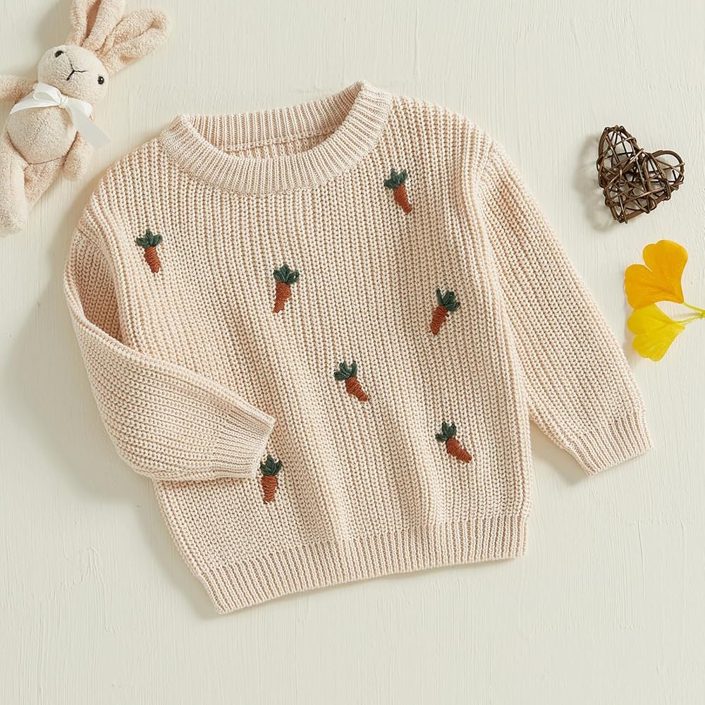 • Package Includes: 1 x Baby boy girl easter sweater. Easter baby boy girl clothes toddler easter carrot knitted sweater oversized long sleeve crewneck knit pullover sweatshirt warm winter clothes, unisex baby boy girl easter clothes, easter toddler sweaters, baby easter outfit boy, baby easter outfit girl. If you have any questions, Please feel free to contact us