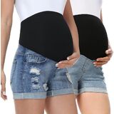 Stylish Design: With cuffed hems and classic pockets, these summer maternity denim shorts are a must-have for any pregnant woman. Stay stylish and cool this summer with these fashionable yet functional essentials.