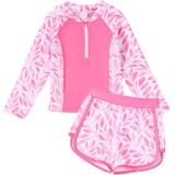2 Piece Design: Toddler girls swim shorts set includes a long-sleeved top and a pair of swim trunks. Toddler bathing suit girl is easy to put on and take off, flexible. Baby bathing suit girl is suitable for summer playing and enjoying water activities