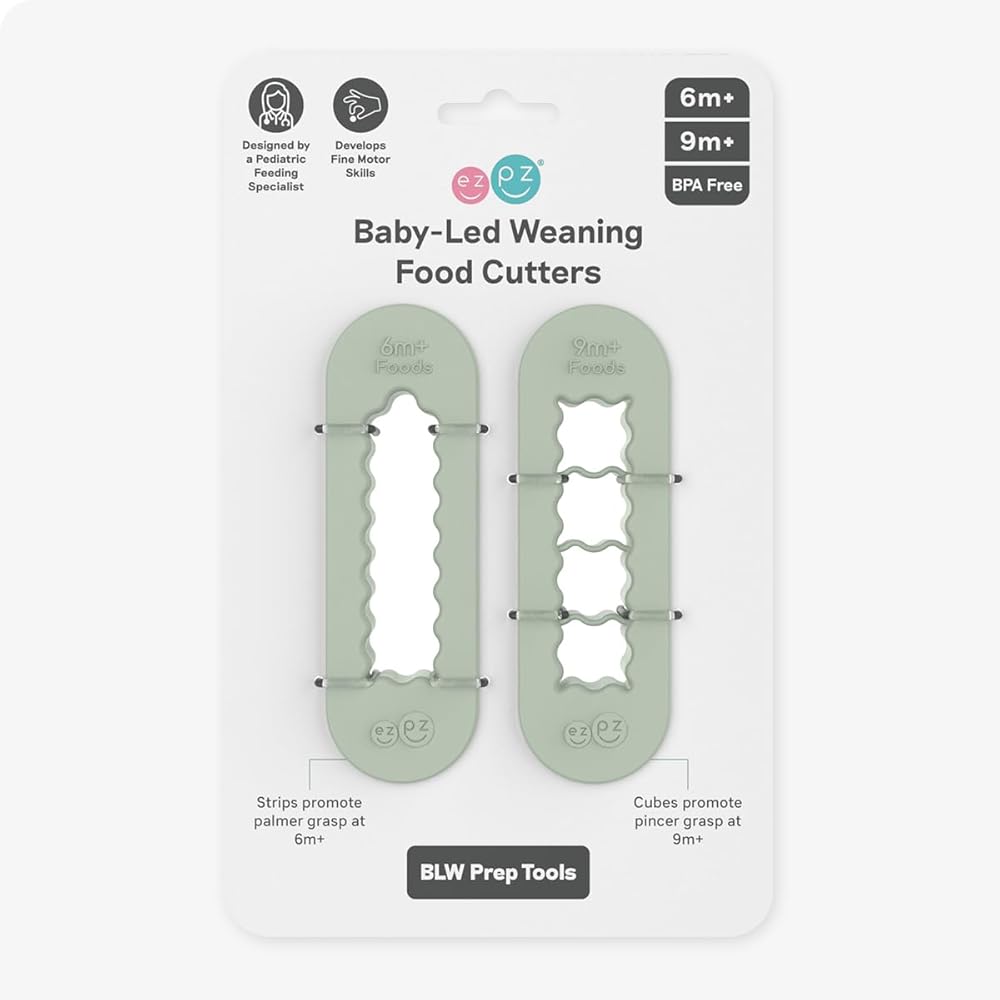 DESIGNED + TESTED BY A PEDIATRIC FEEDING SPECIALIST: All ezpz products are designed to help children meet milestones. The 6m+ food cutter makes finger-length strips that promote the palmar grasp. The 9m+ food cutter makes cubes that promote the pincer grasp.