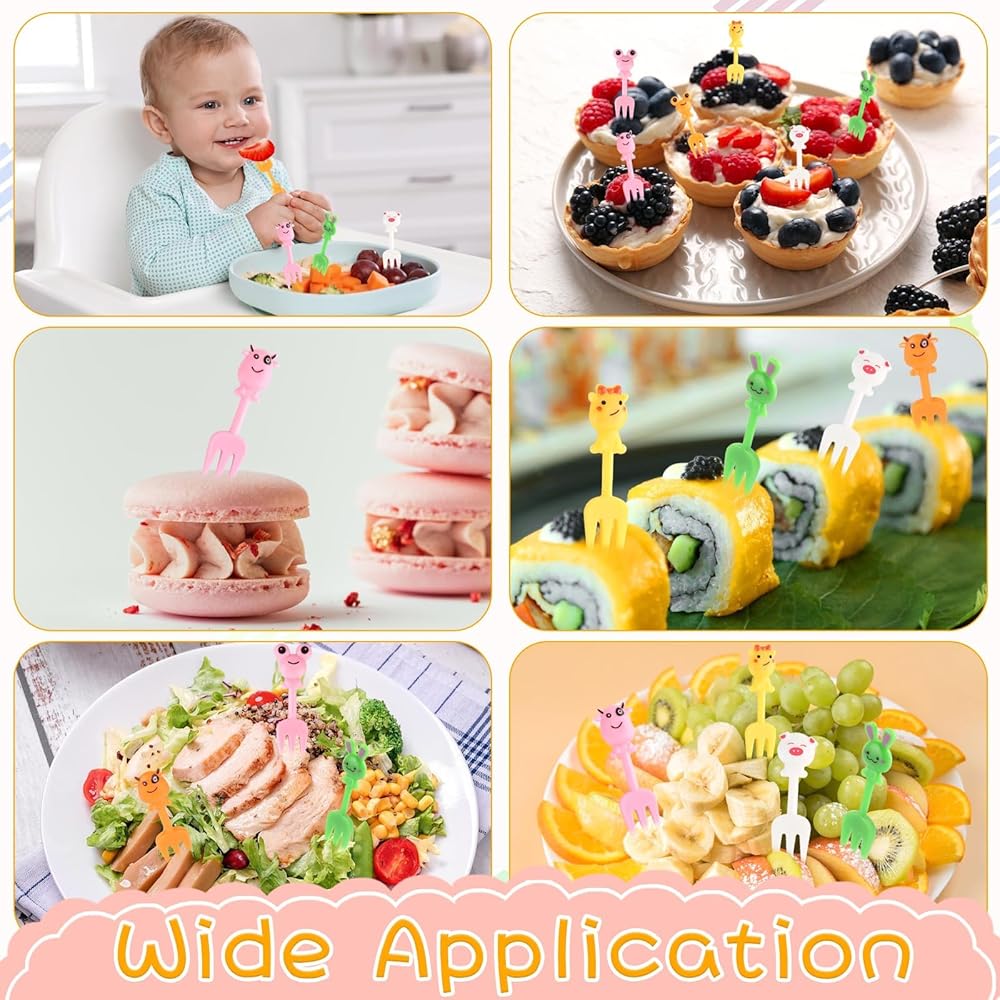 √ Cute fruit forks with animal design, very popular with kids at birthday parties.Easy to clean and wash, just put them in water and shake to clean, durable and sturdy to be used many times.