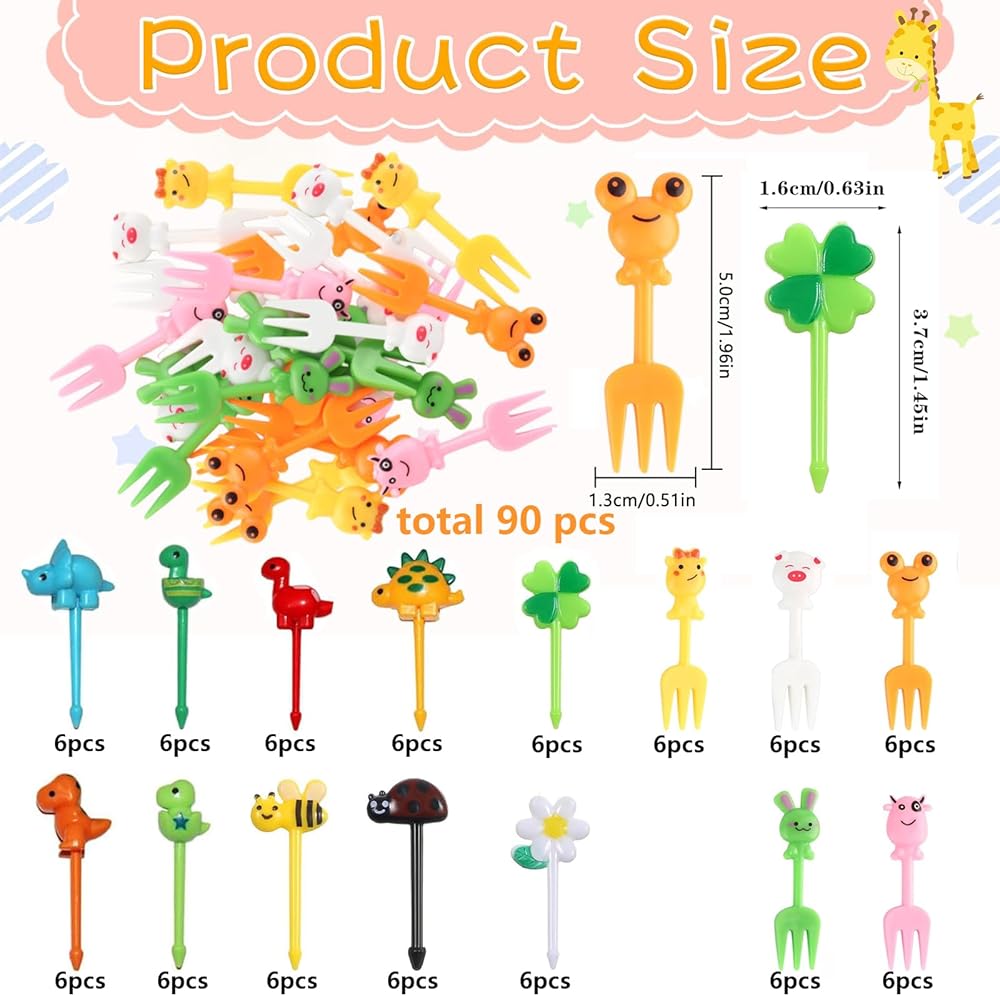 90 Pieces Plastic Animals Fruit Forks, 19 Typology Food Picks for Kids, Kids Toothpicks for Lunch, Kids Lunch Accessories Reusable for Party Afternoon Tea Birthday Party