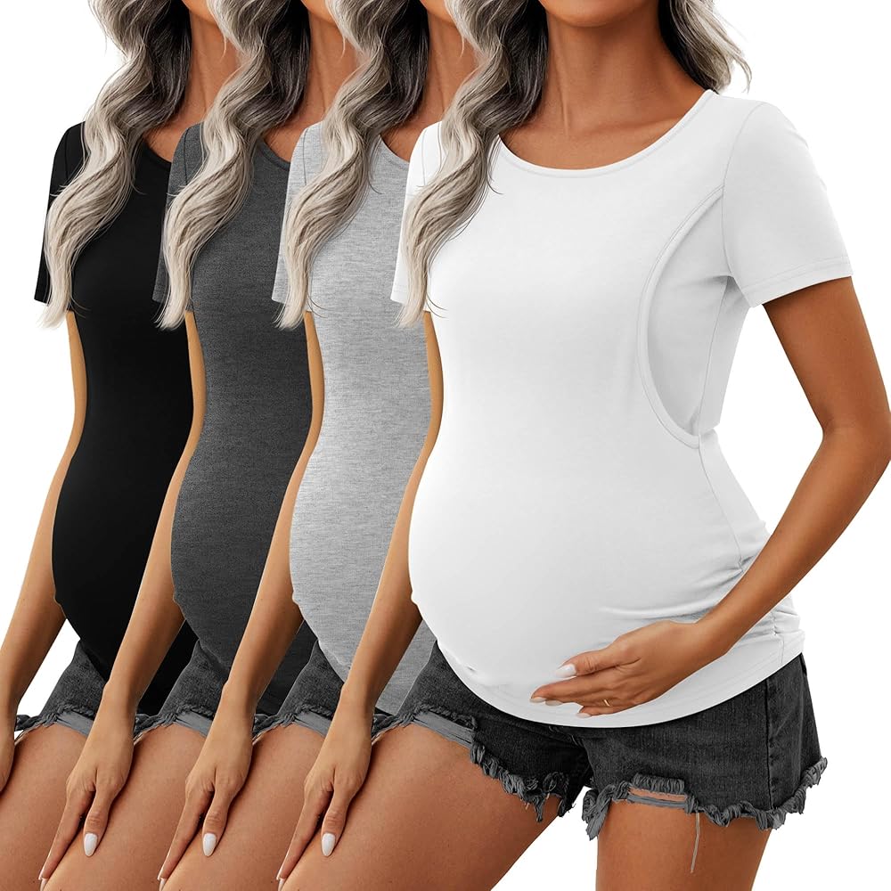 4 Pack Short Sleeve Maternity Tops: The multi-pack can well meet your daily changing and washing needs. You can also choose different colors to match according to the occasion. They are very cost-effective and are a practical must-have in the wardrobe