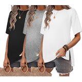 Multifunctional Maternity Shirts: Maternity tops for women 2025, casual crew neck, solid color, oversized maternity shirt for women loose fit, side split maternity t shirt provides enough coverage, also allows easy access for hide bump, loose hem make it easy to change out bandages and care for the wound, it can be used as a casual workout tops or athletic maternity t shirts, also an excellent choice for pregnancy. Suitable to wear in all seasons.