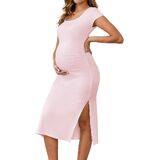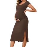 Design: The casual midi slit maternity dress features a square neck, short sleeves, and side ruching with a split, while offering generous space for a growing baby bump. It is both comfortable and stylish, hi