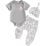 Mobbdow My First Baseball Season Baby Boy Outfit Newborn Letter Print Short Sleeve Romper Baseball Pants Hat 3Pcs Outfits Set