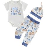 Newborn Baby Boy Girl Coming Home Outfit Letter Print Romper + Long Pants + Hat Set 3Pcs Cute Infant Clothes