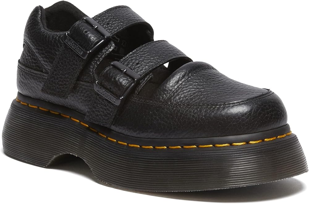 ELEVATED EDGE: Rise above the ordinary—literally. With a 1.5-inch heel and a 1-inch platform, these shoes give you a subtle boost without compromising stability. The chunky yet balanced sole adds a bold finish to the classic design, making them the perfect choice for those who love a bit of height with their attitude. Whether you're dressing up or down, the Dr. Martens Buzz Mary Janes add a confident lift to every look—powerful, playful, and unapologetically you.