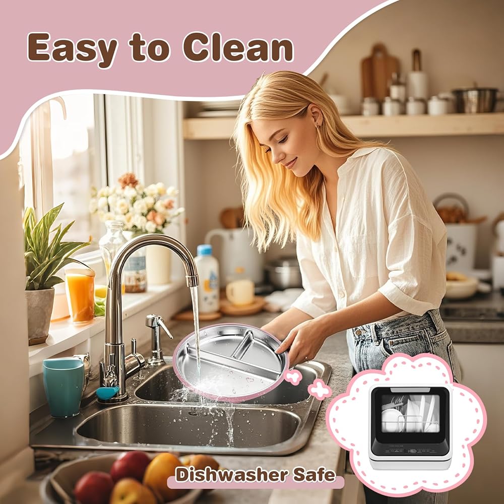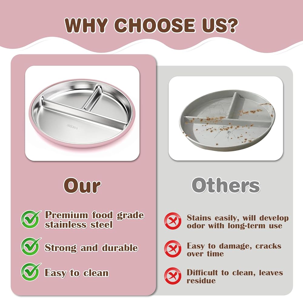 Durable & Safe Design: Crafted from 100% food-grade 304 stainless steel, these toddler plates are BPA-free, lead-free, safe for kids. The smooth surface resists oils and odors, ensuring each meal is fresh and hygienic for your little one