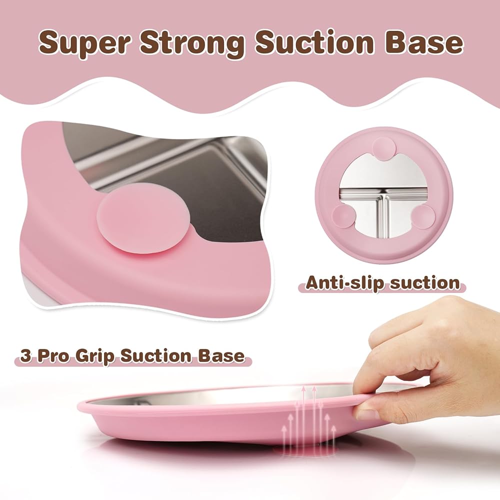 Mess-Free Mealtime: Equipped with a strong removable silicone suction base featuring non-slip suction cups, these baby plates stay securely attached to highchair trays or tables, minimizing spills and preventing toddlers from flipping their plates. Perfect for self-feeding