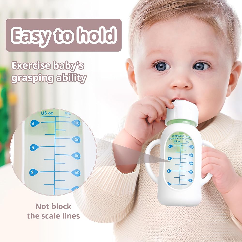 Ergonomic Handle Design: Joxodak Silicone Sleeves for Dr Brown Natural Narrow Glass Baby Bottle features a convenient handle that encourages babies to grip, also improving their hand strength. The cute patterns attract your baby's attention, making feeding time a fun experience