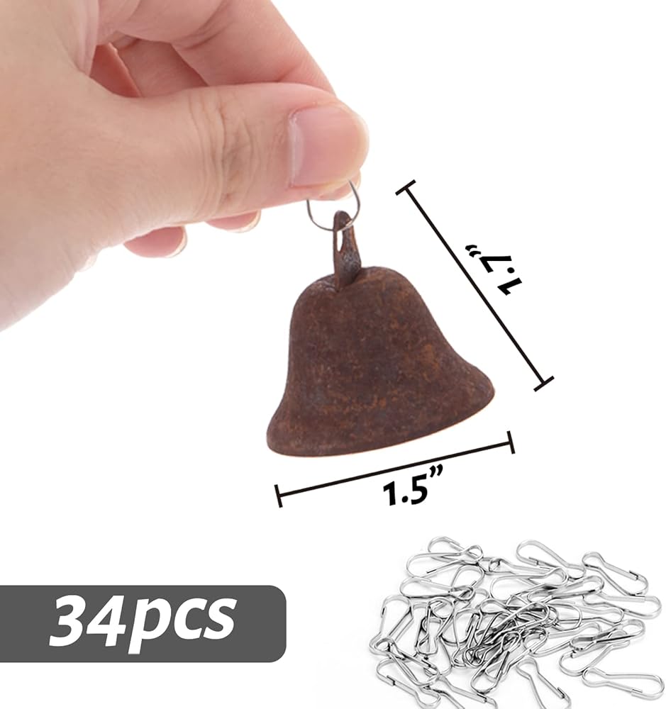 What You Will Get - 34PCS Vintage Bronze Bells (1.5inches in diameter and 1.7inches high), 34PCS Spring Clips (for hanging, separately packed, will not be lost)