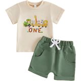Features: First birthday outfit boy, my first birthday boy outfit features number animal print, short sleeve round neck tops with elastic waist solid color shorts with strap and pockets, Loose cut is comfortble, wild one 1st birthday boy, 1st birthday outfit boy