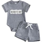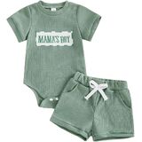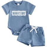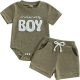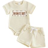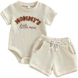 Infant Baby Clothes: Baby boy shorts set,little dude/mama's boy letter embroidery, short sleeve, crew neck romper, matching with elastic waist solid color shorts, with strap and pockets