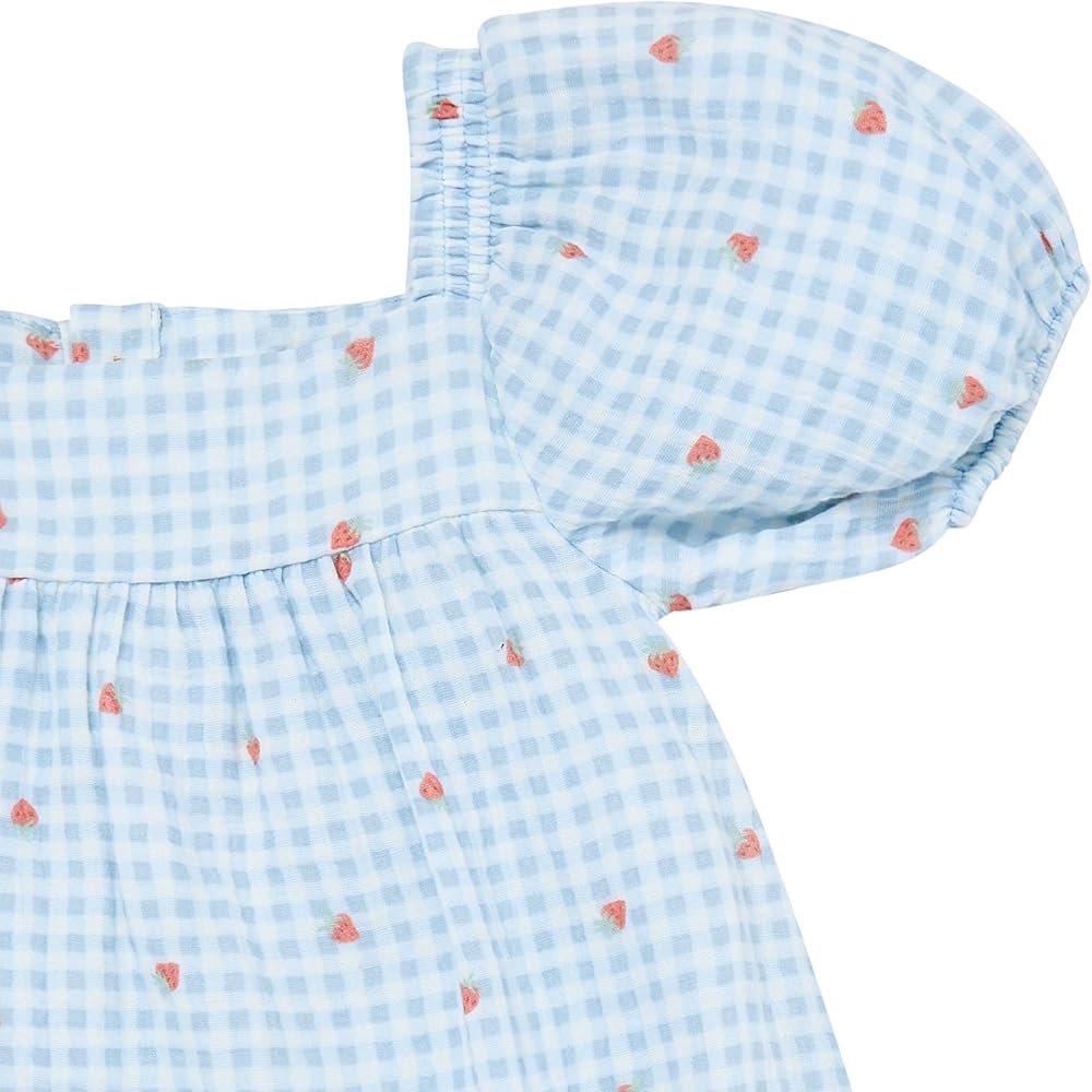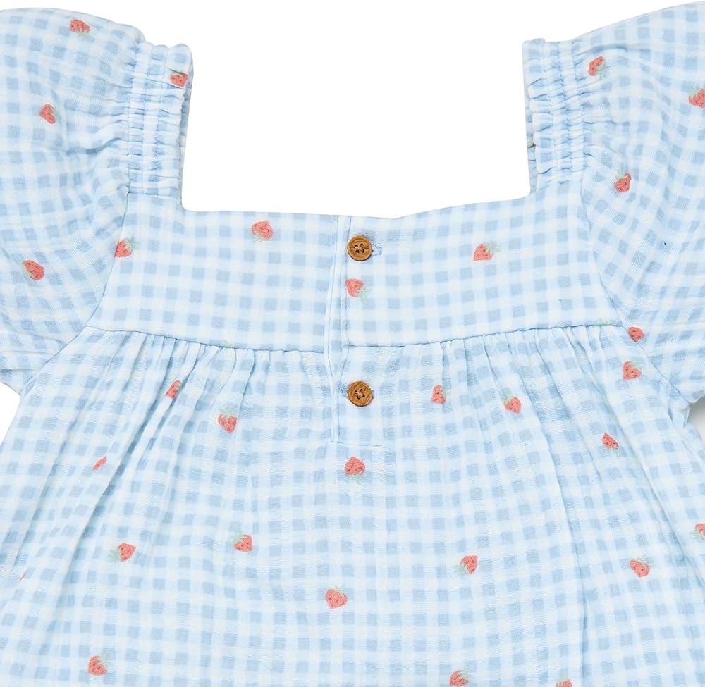 Your little one will be all smiles in this fun and fashionable baby or toddler girl dress! Made from 100% cotton, it's gentle on sensitive skin and features lightweight, breathable cotton gauze to keep her cool on warmer days. Elastic at the shoulders, neck, and back ensures a comfortable, flexible fit, while the stylish puff sleeves add an adorable touch. With charming faux wood buttons at the back, this dress is perfect for any occasion—whether it's a playdate or a family photo!