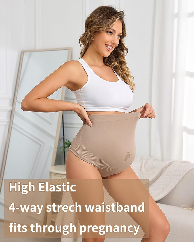 BREATHABLE & COMFORTABLE: Crafted with cotton crotch and high-stretch maternity seamless underwear fabric, maternity underwear for under dress is breathable, lightweight, and ultra-comfortable. Pregnancy support underwear design ensures maximum airflow, keeping us cool and dry all day long. Whether you're in your first trimester or third, maternity thongs for pregnancy grow with you, offering unmatched comfort and flexibility. Ideal for pregnant women's underwear needs