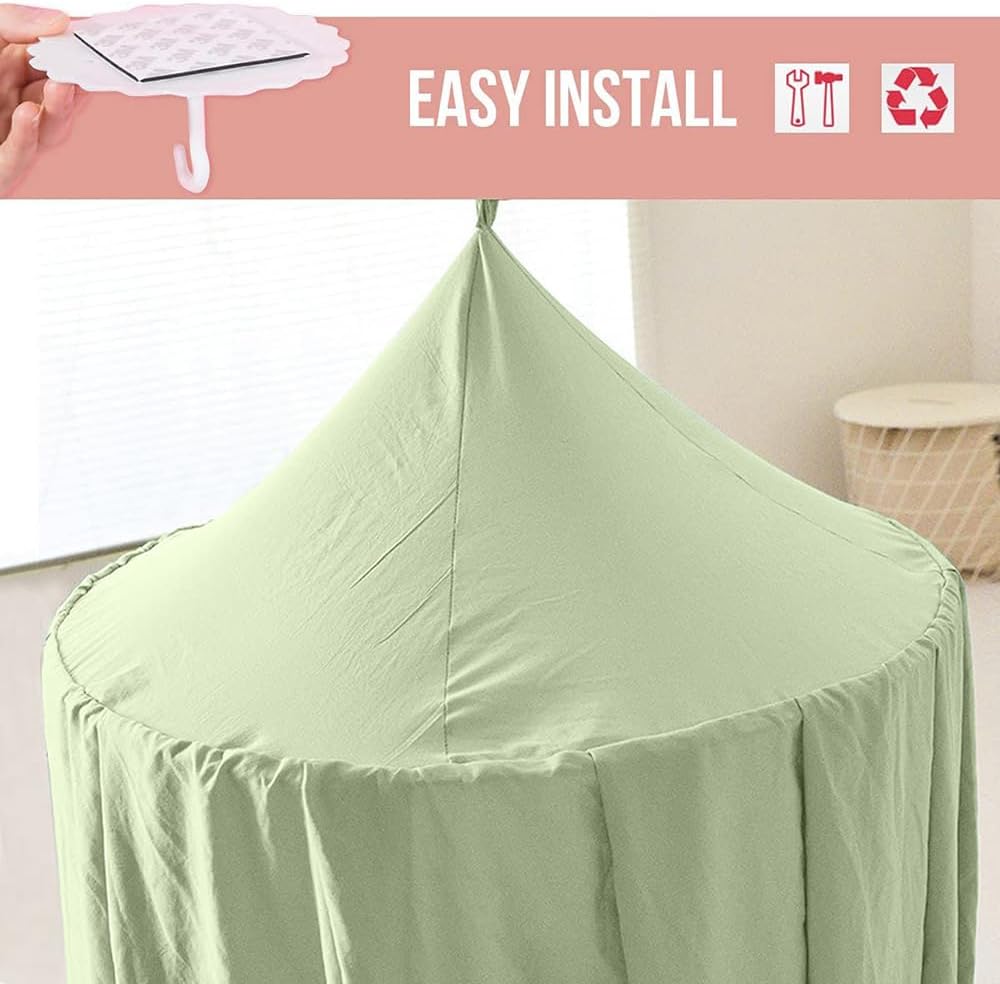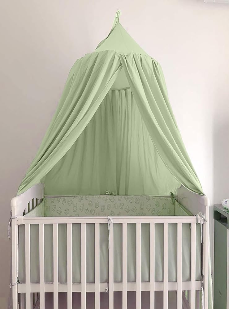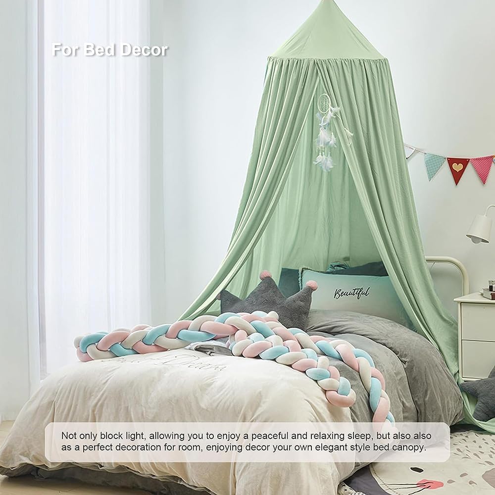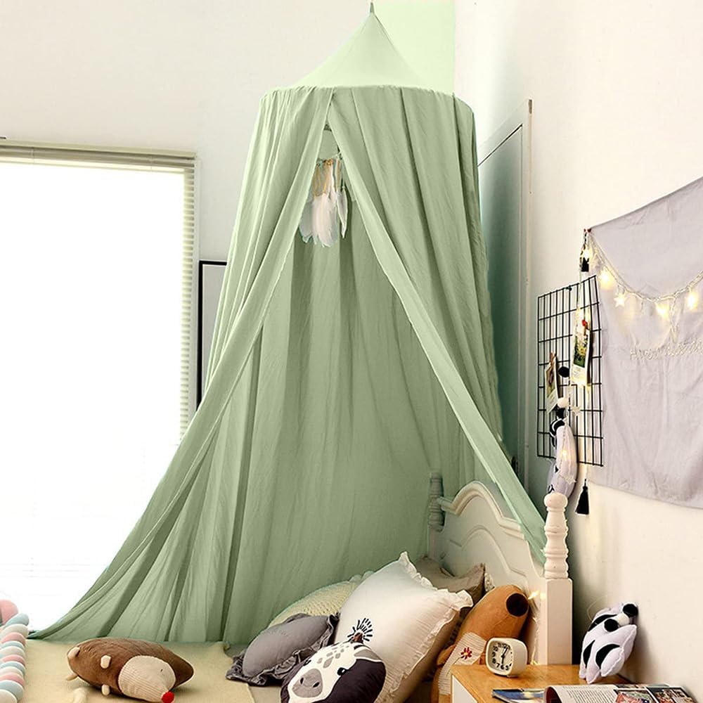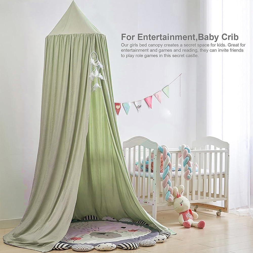 Bunnikins & Clover Bed Canopy for Girls Boys Bedroom Decor, Round Dome Mosquito Net for Baby Crib, Nook Castle Game Tent Nursery Decoration for Child, Play or Reading (Pea Green)