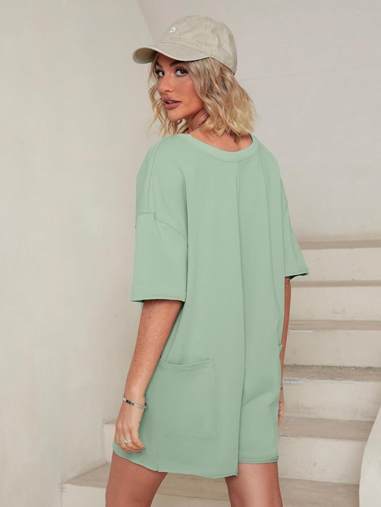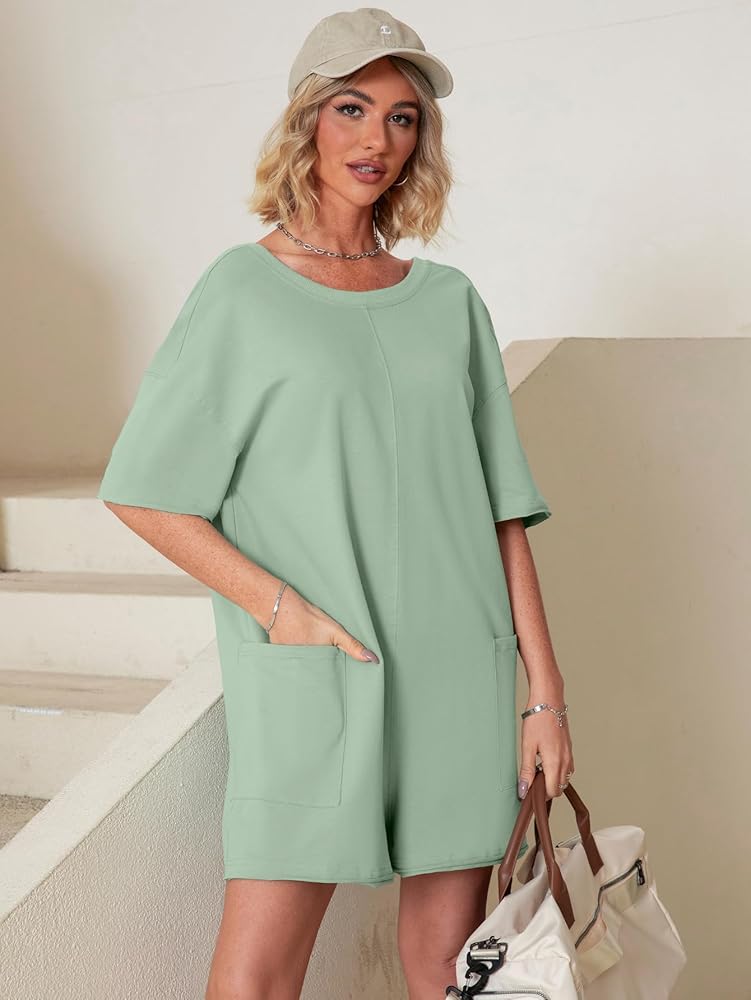 Features - This oversized romper is onesie and it is loose fit with backless design that allow for movement. The romper with a scoop neckline, ribbed trim, and two side patch pockets at the front, This Tee Romper is very stylish and functional, combines style. It's perfect for look good while staying active. The large backless back is designed, allowing you to keep style and being practical,also keep you cool during exercise.
