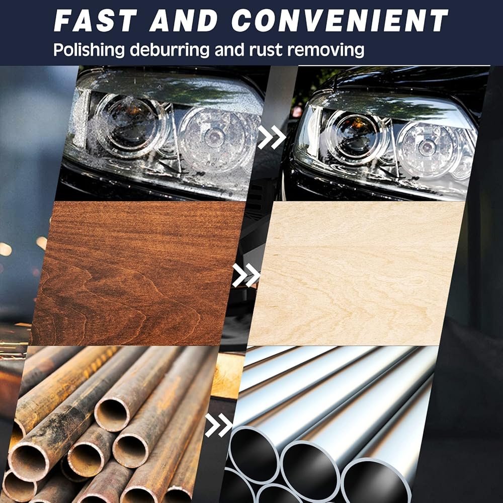 Broad Compatibility and Versatility: Included with a 1/4" roll lock holder, this set is compatible with both pneumatic and electric tools like power drills and die grinders. Ideal for a wide range of materials such as metal, wood, stainless steel, stone, glass, and ceramics, it's perfect for sanding, polishing, deburring, rust removal, and paint removal jobs