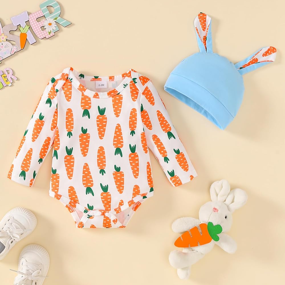 Design:Adorably carrot top, with my first Easter bunny print overalls. Simple and stylish, it's the perfect gift for a baby boy's first Easter.