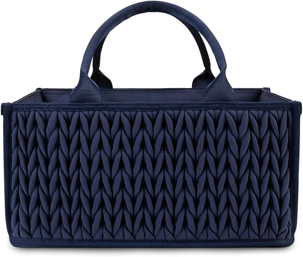 diaper caddy is very spacious and it has deep pockets so you can store anything,