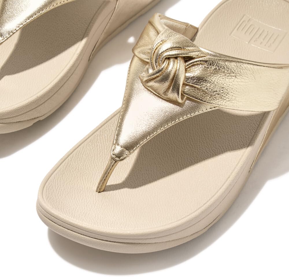 FitFlop's bestselling Lulu sandals boast a timeless triangular vamp, softly padded uppers, and a soft leather toe post. Ergonomically engineered with FitFlop's legendary triple-density Microwobbleboard midsoles, to diffuse underfoot pressure, reduce impact, and deliver non-stop cushioning. Here crafted from shimmering metallic leather, with a padded knotted strap giving simple sculptural detail (this section uses butter-soft nappa leather that drapes and twists beautifully). Choose from 'neutral' metallic shades that team with countless looks. Elegant, and supremely comfortable, sandals day through to evening.