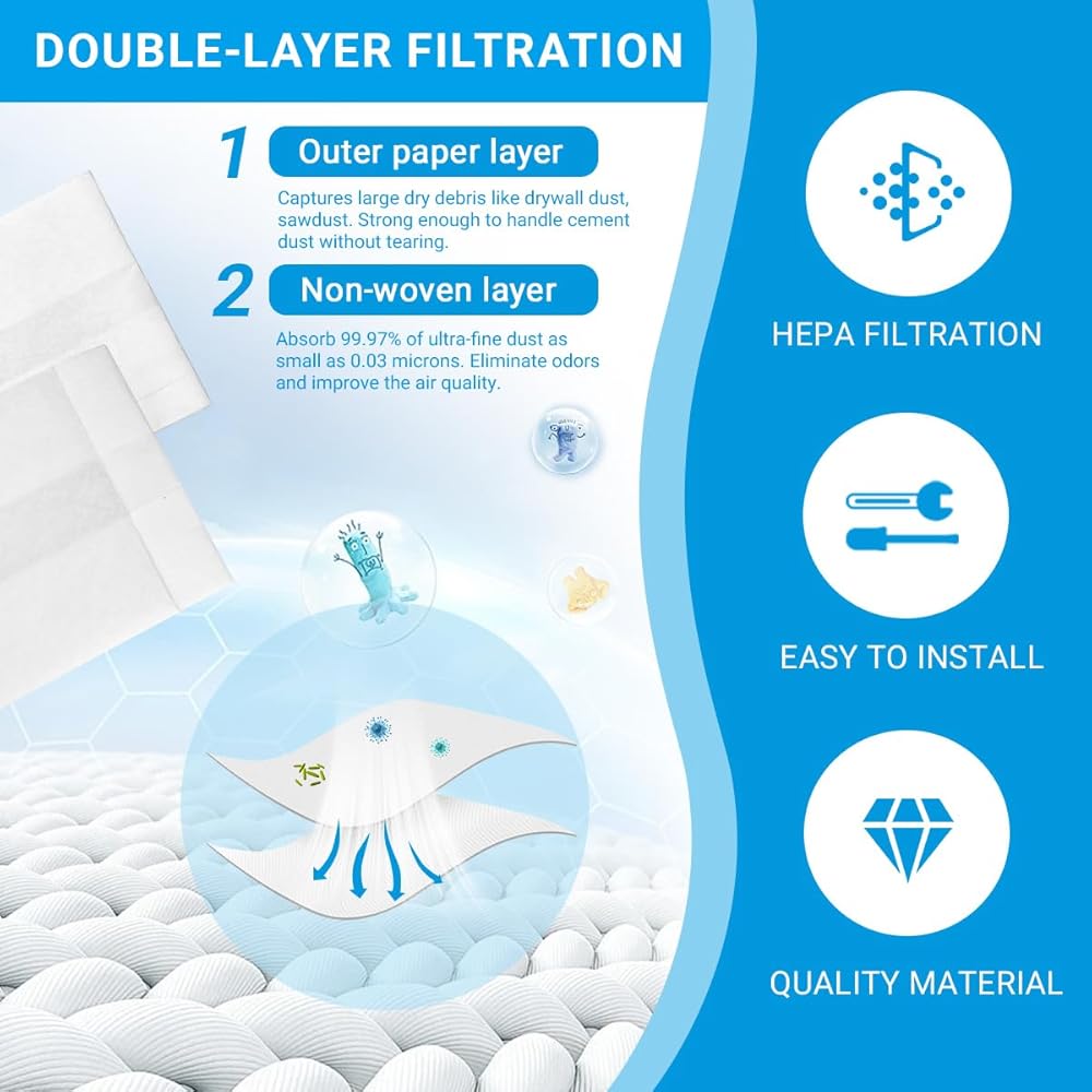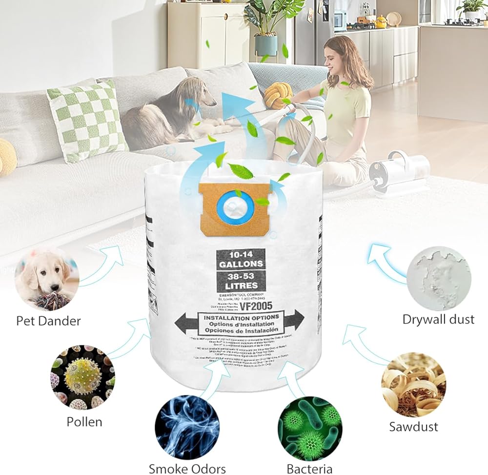 COMPATIBILITY: Compatible with shop vac bags 10-14 gallon, Type F 90662/065145, 9066200, 9066233; Type I 90672/012332, 9067200, 9067233. ✖𝐍𝐎𝐓 𝐅𝐈𝐓𝐒 𝐬𝐡𝐨𝐩 𝐯𝐚𝐜 𝐰𝐚𝐥𝐥 𝐦𝐨𝐮𝐧𝐭 𝐨𝐫 𝐡𝐚𝐧𝐠 𝐮𝐩 𝐯𝐚𝐜𝐬.