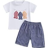 Feature: Cute toddler baby boy summer outfits shorts set, short sleeve graphic t shirt tops, matching plaid boxers beach shorts, perfect toddler infant boys birthday, Valentine's day party fall winter casual outfit clothes, pull on closure, easy to put on and take off
