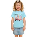 🐰Package: 1* Girls Easter Bunny Graphic Chillin' With My Peeps Letter Print Short Sleeve T-Shirt. Wear this happy Easter party top, spread the love, and share the spirit of life force!