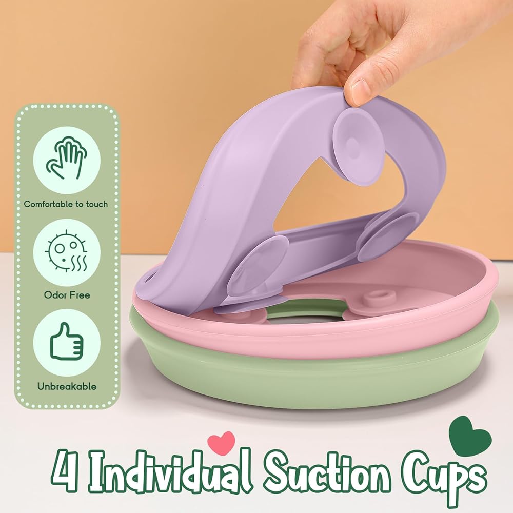 All Round Anti Slip Design: the silicone protective cover of our toddler plates has suction and can adhere firmly to any flat surface on the high chair or table; This prevents kids from knocking over or throwing away plates and encourages independent, neat eating