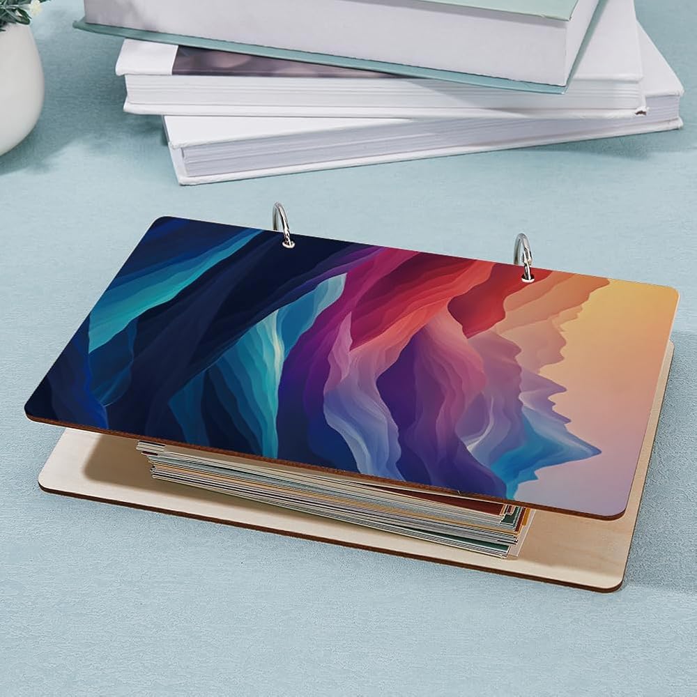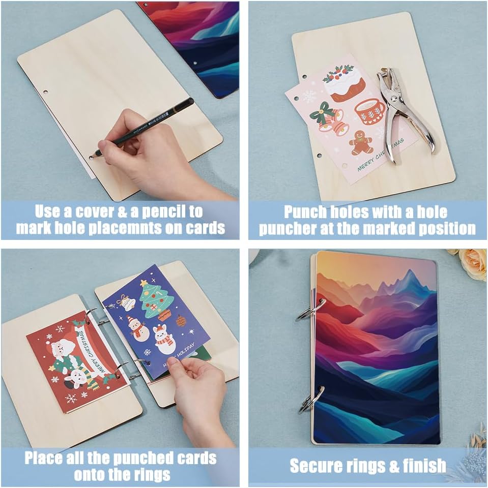 2PCS Wooden Card Keeper: Included 2 pcs wooden 2-ring loose leaf binder postcard photo album cover, one is printed with patterns that can be used as a cover, and the other can be used for the back protecting, to protect and display the cards you've saved from family and friends over the years.