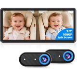 BM5PRO 7.2" 1080P HD Baby Car Camera for 2 Kids, Split Screen with IR Night Vision, Easy to Install & Adjust Brightness, Dual Car Camera Baby Monitor for Rear Seat Safety