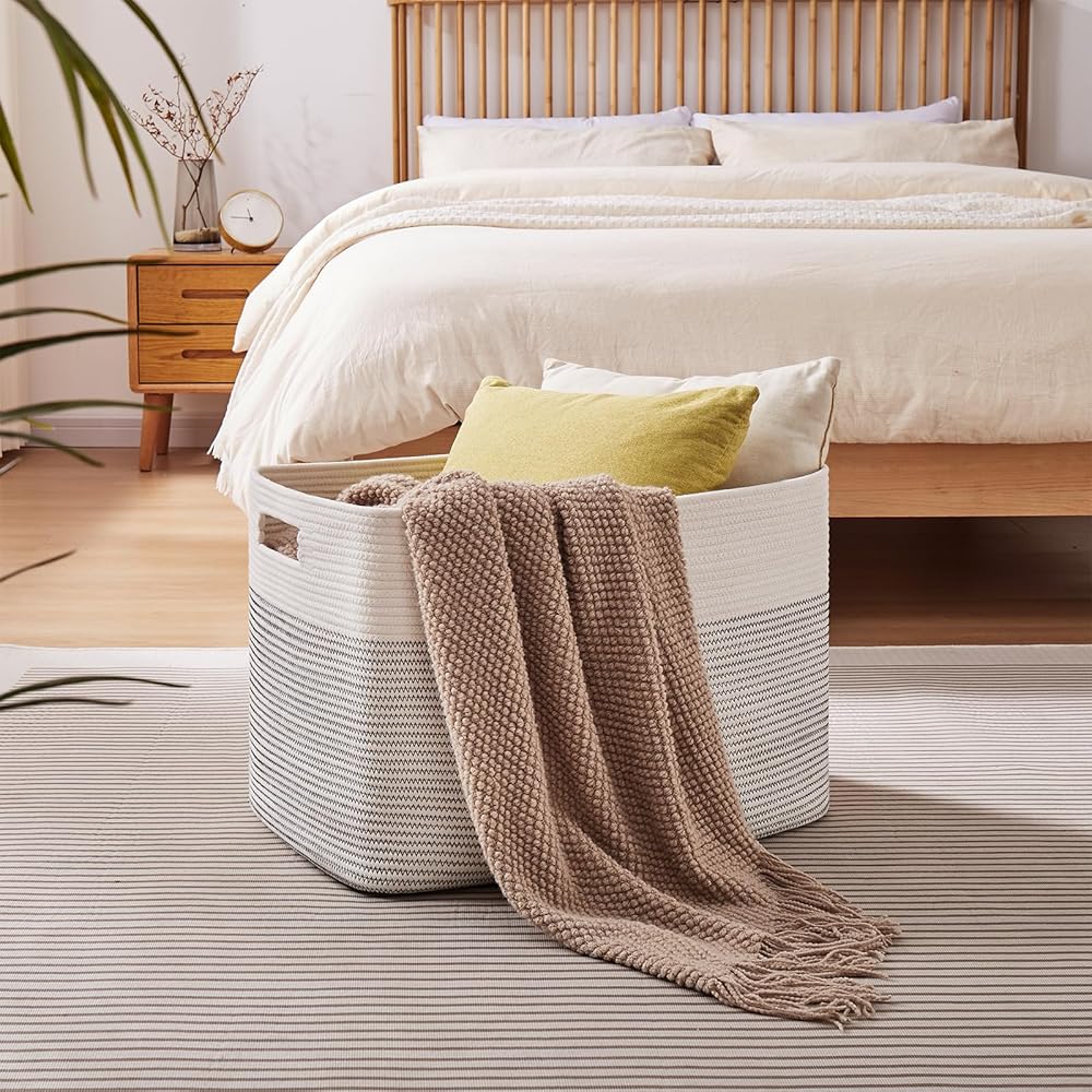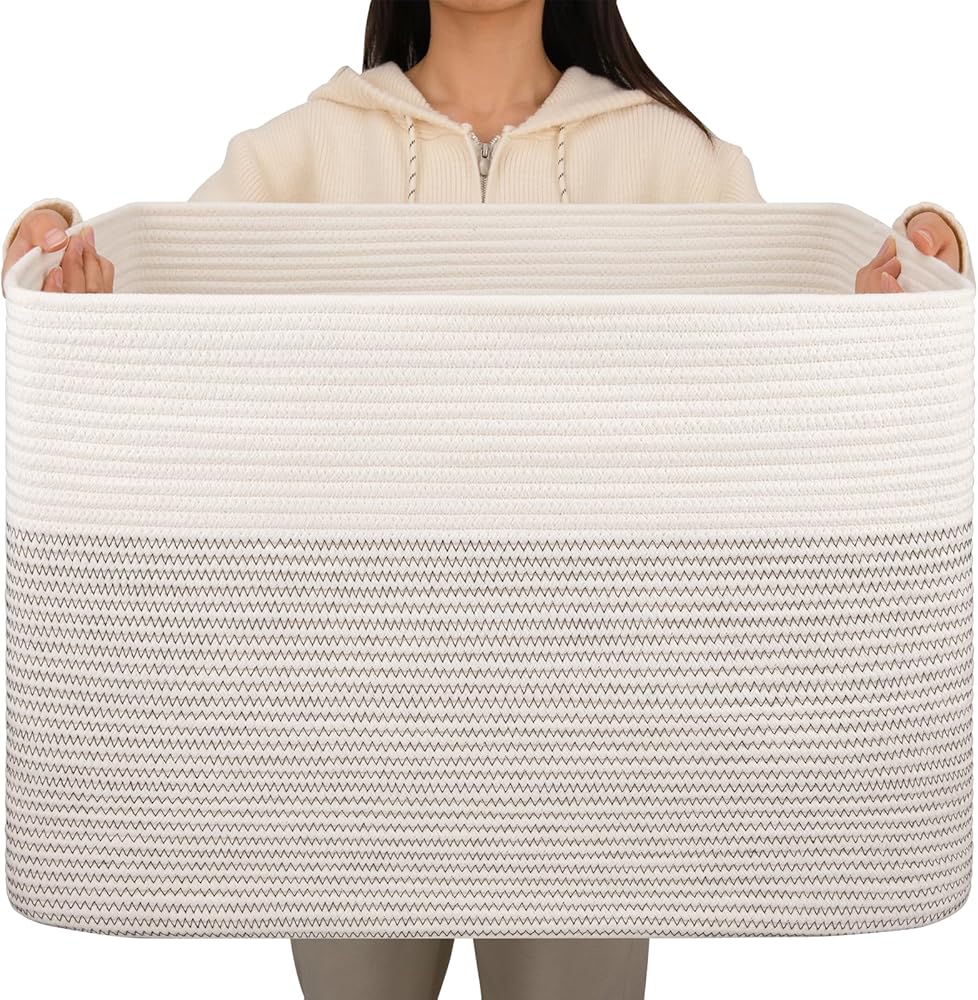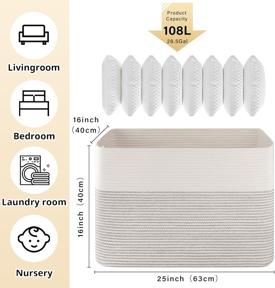 108L Blanket Basket for Living Room: This laundry basket is more stable and easier to restore its shape after you receive the package. The 25”x16”x16” large storage basket can also used to store blankets, pillows, cushions, toys, clothes and towels