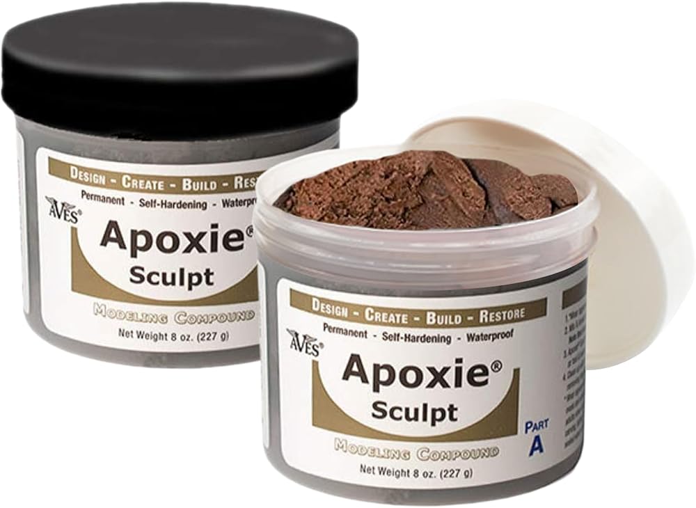 "Apoxie Sculpt combines the features and benefits of sculpting clay with the adhesive power of epoxy! This modeling clay's smooth, putty-like consistency is easy to mix & use. Self-hardens (No Baking); cures hard in 24 hrs., semi-gloss finish. Adheres to nearly any surface. Great for sculpting, embellishing, bonding and filling most anything. Accepts paints, stains, mica powders & more for a variety of finishing options. Be Creative with Your Own Uses! Available in 12 colors you can mix & match!."