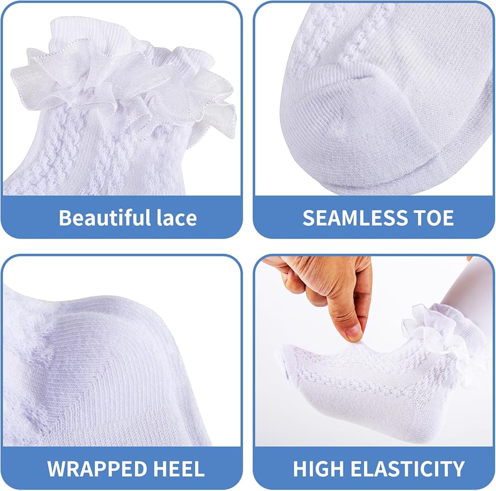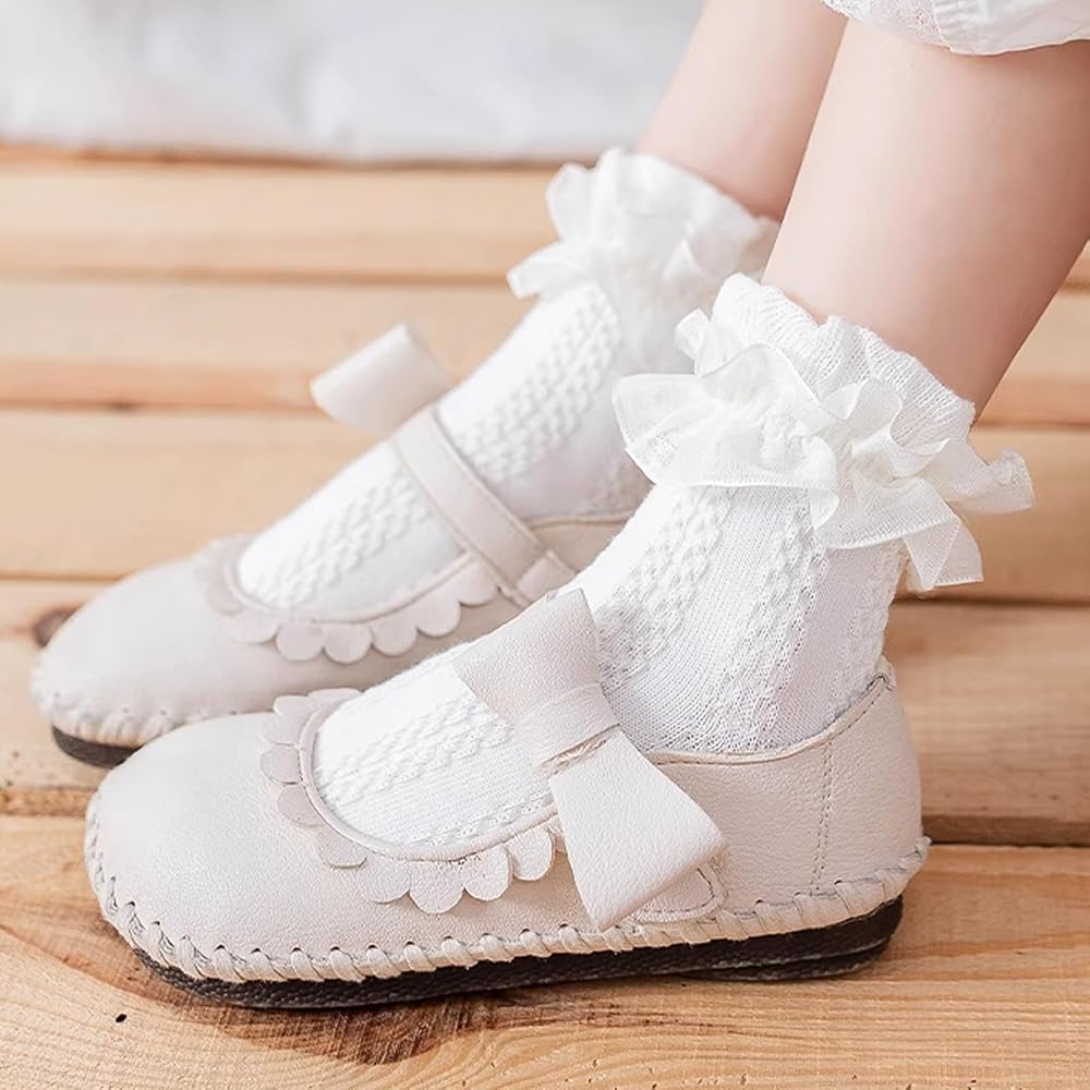 【Lovely Ruffles Features】With ruffle edge design, looks more cute and adorable for daily wear or dress up,These Ruffle Lace Socks are Lacy and Cute as well as Soft and a Little Stretchy,Elastic cuff could stay more solid on kid's feet, not easy to slip down, squeeze ankle and skin,Decorated with Ruffler Lace at the mouth, lovely and vivid, giving people a sense of playful vitality,The socks will look great with a pair of a dress.Garment care: hand washes are recommended or machine washes.