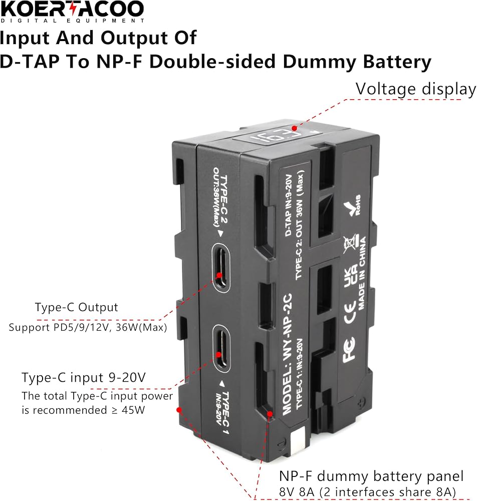 KOERTACOO Dual-Sided NP-F Series Dummy Battery: Power Your Devices with Precision and Efficiency