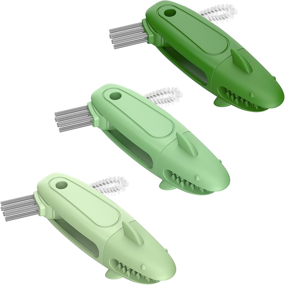 SharkBrush-3 in 1 Cup Lid Gap Cleaning Brush Set, 3Pcs Bottle Gap Cleaner Brush, Silicone Cup Lid Brush, Multifunctional Bottle Brush, Cleaning Tools for Home Kitchen Office (Blue) (3, Green)