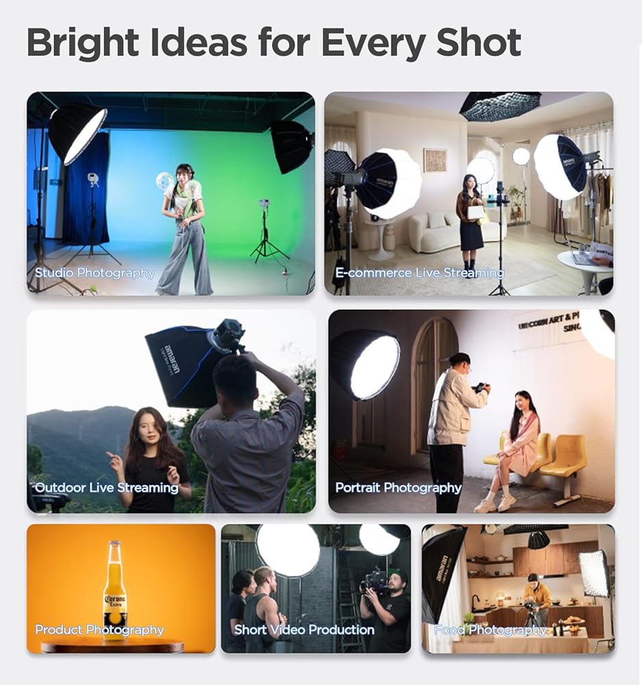 【One Softbox for All Your Bowens Lights】Featuring the universal Bowens Mount, the amaran Octa Dome 90 is compatible with a wide array of Bowens Mount fixtures. This modifier creates a soft, natural glow for portrait photography and interviews, making it the perfect octagonal softbox for home studio setups and wider areas.