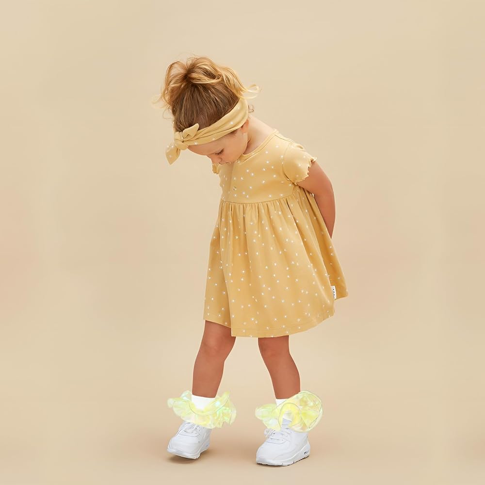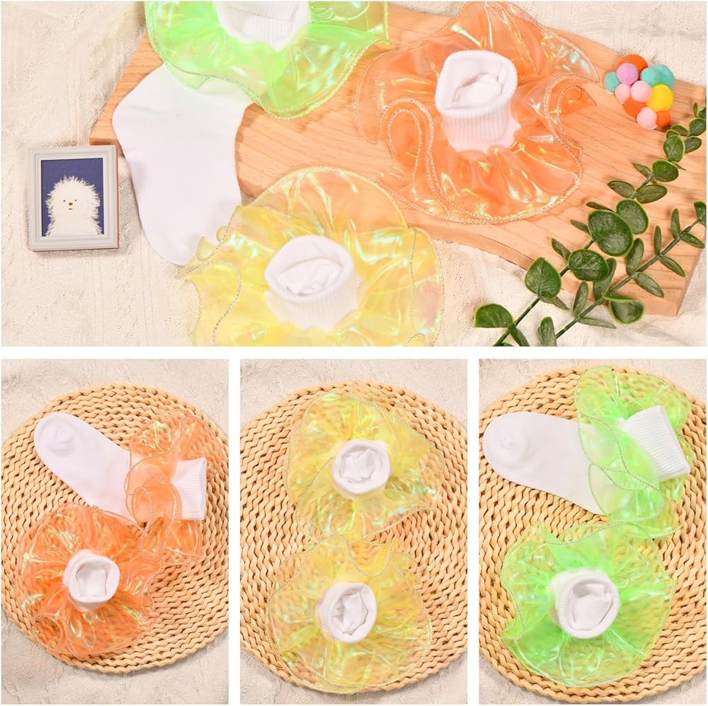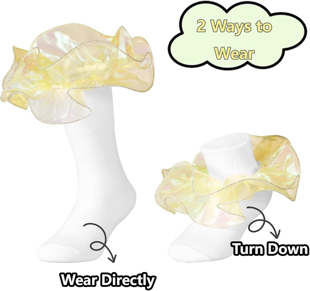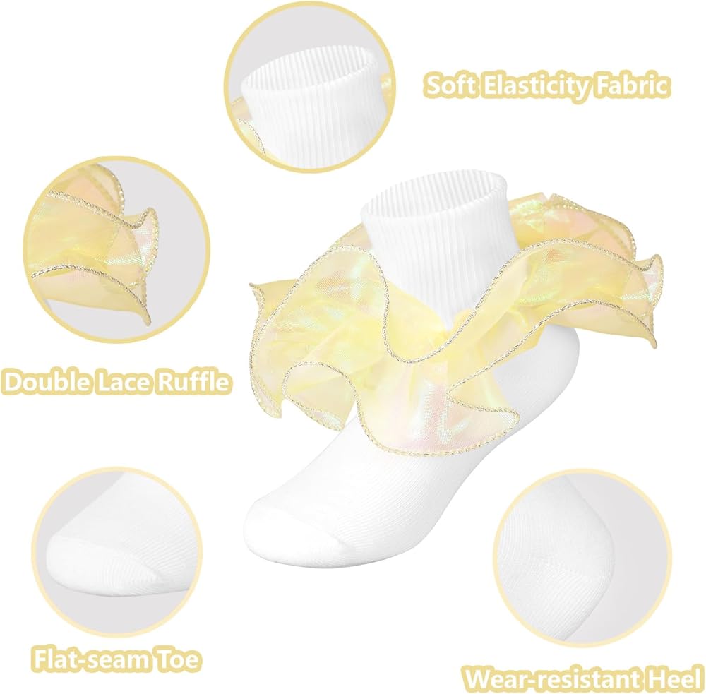 1. Package includes: 3 pairs of princess pleated socks. 3 pairs of girls' ankle socks with different color combinations suitable for young children, shimmering organza materials, to meet the dressing needs of girls.