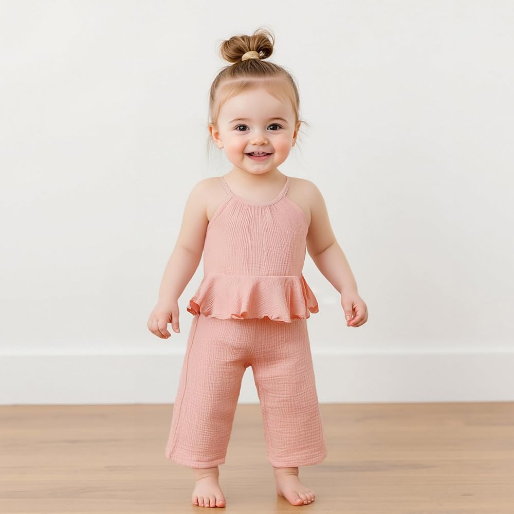 Baby Girl 2Pcs Summer Outfits Sleeveless Ruffle Cami Tops + Wide Leg Pants Set Toddler Clothes